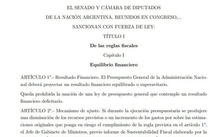 El núcleo del proyecto se concentra en el Título I del texto de 13 páginas con la reforma, que establece una regla fiscal estricta "la prohibición absoluta de sancionar presupuestos deficitarios", teniendo en cuenta el ahogo fiscal al que llevó a cabo la Nación a las Provincias. Con esta disposición, el Congreso queda atado a un principio contable cuyo cumplimiento depende de variables volátiles —como recaudación, actividad económica e inflación— que escapan al control legislativo. La medida apunta a disciplinar el gasto, pero reduce sensiblemente la capacidad del Estado para responder a shocks económicos o emergencias.