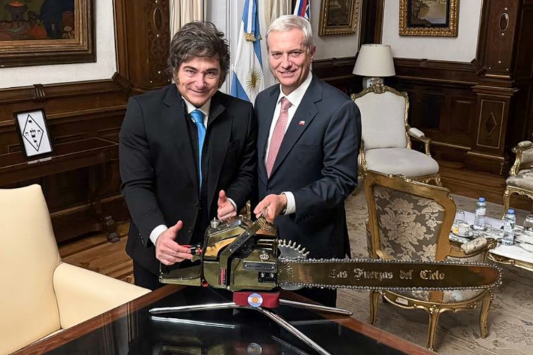 Estuvieron cerca de dos horas sacándose fotos y haciendo chistes. Desde la cuenta oficial de la Casa Rosada también publicaron un video donde se los ve agarrados a una motosierra que Milei tiene en su despacho y Kast pronuncia: "Si hay una buena noticia, es que la libertad avanza en toda Latinoamérica". Milei se suma al grito de "Viva la Libertad Carajo".