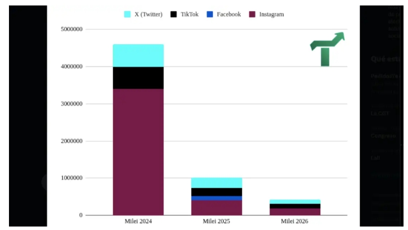 En coincidencia, Tendencias Consultora, de Hernán Pellegrino, también registró que "la performance de los posteos de Milei en redes sigue decreciendo". Si en 2024, en su primera apertura de sesiones, acumulaba más de 4,5 millones de "me gusta", esa cifra se redujo a un millón en 2025 y a menos de medio millón ahora.