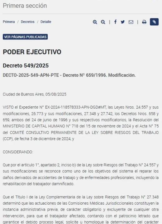 Se trata de la actualización de la tabla de evaluación de incapacidades laborales, aprobada por el decreto 549, del 5 de agosto de 2025, que dispuso que las modificaciones entrarían en vigor después de 180 días corridos, es decir, a partir del próximo 2 de febrero.