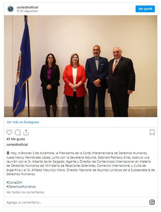 A las 18.39 de ayer, la Corte IDH publicó en sus redes sociales una foto de Vitolo con la presidenta del organismo, Nancy Hernández López. Eso habría precipitado la decisión de Baños.