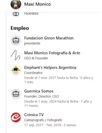En esa misma red social puede leerse que se desempeña como presidente de Green Marathon desde 2024. La organización tiene publicaciones en Instagram desde octubre de 2023 y su sitio web está activo desde el año pasado.