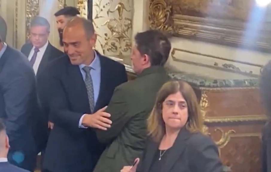 El optimismo renovado de Lule fue tal que apareció delante de las cámaras en la jura de Pablo Quirno como canciller. En un video filmado por el periodista Pablo Lapuente, de LetraP, se puede ver cómo Lule le da a Santiago un abrazo paternalista, de tono condescendiente.
