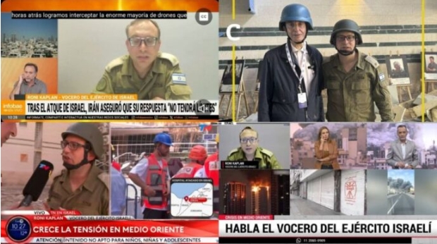 «Roni Kaplan, portavoz del ejército israelí», «Gabriel Ben – Tasgal», presentado como «periodista especializado en Medio Oriente», cuando en realidad es una agente del lobby israelí con denuncias por sus vinculaciones incluso con el Mossad.