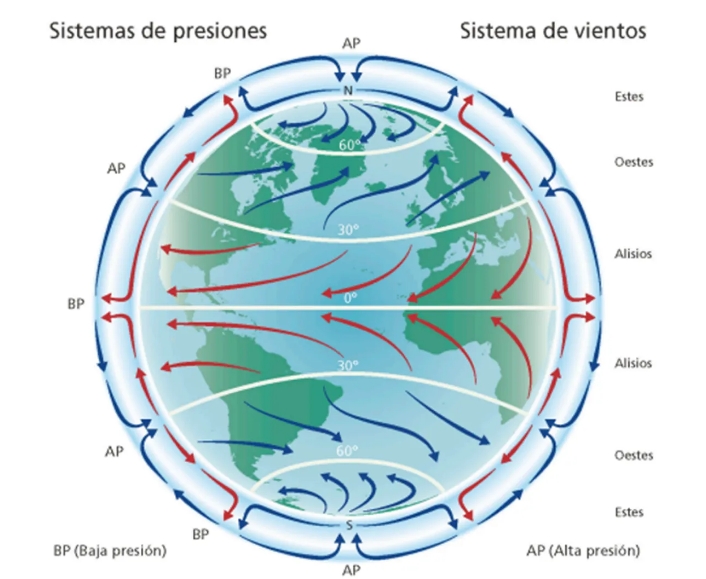 Los llamados "vientos globales" se mueven a lo largo de grandes distancias alrededor del planeta.