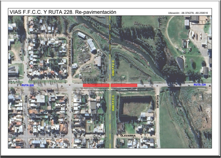 Según la nota presentada a Vialidad Nacional, las obras implican colocar semáforos vehiculares en la intersección de la Ruta Nacional 228 con la calle Rocha, en el cruce de la misma ruta con la Avenida Almafuerte, lugar donde también se construirá una rotonda. Las tareas incluyen un puente peatonal sobre la ruta a la altura de La Rioja y la mencionada reparación del asfalto en la zona de las vías por su muy mal estado.