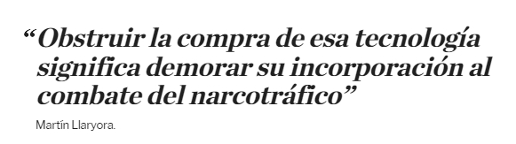 "Obstruir la compra de esa tecnología significa demorar su incorporación al combate del narcotráfico", dijo Llaryora en una frase que también se lee como un aval a Juan Pablo Quinteros, su ministro de Seguridad, quien días atrás denunció al Tribunal de Cuentas juecista por incumplimiento de funcionarios públicos al "bloquear" la compra de drones.