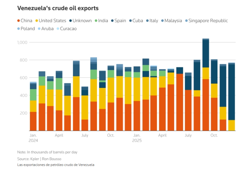 Los precios de referencia del petróleo habían subido ligeramente en las últimas semanas a medida que Washington intensificaba su presión militar y económica sobre Caracas. Sin embargo, cualquier nueva interrupción de las exportaciones probablemente tendrá un impacto limitado en el mercado petrolero mundial, sobre todo porque se prevé que la oferta supere con creces la demanda en 2026.