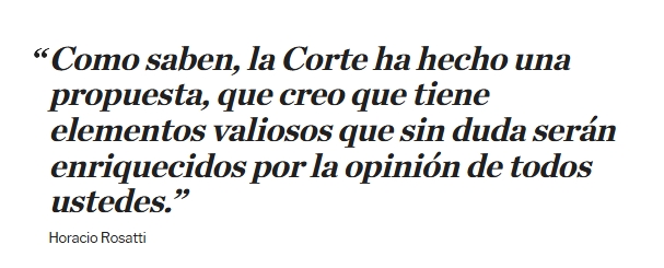 Y agregó: "como saben, la Corte ha hecho una propuesta, que creo que tiene elementos valiosos que sin duda serán enriquecidos por la opinión de todos ustedes".