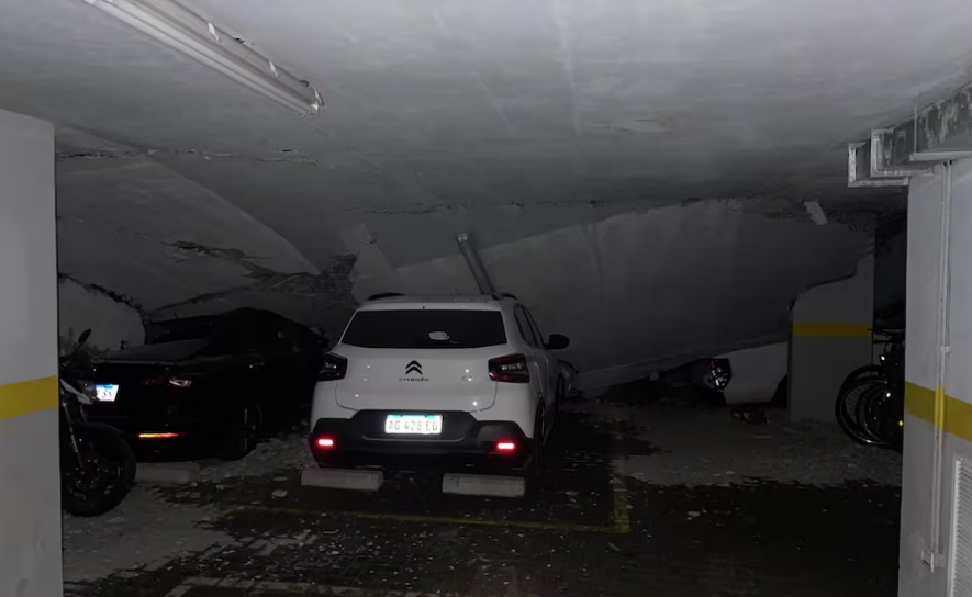Ocurrió esta madrugada, cuando cedió el techo del estacionamiento en el subsuelo. Decenas de vehículos quedaron aplastados. Los vecinos fueron evacuados por prevención.