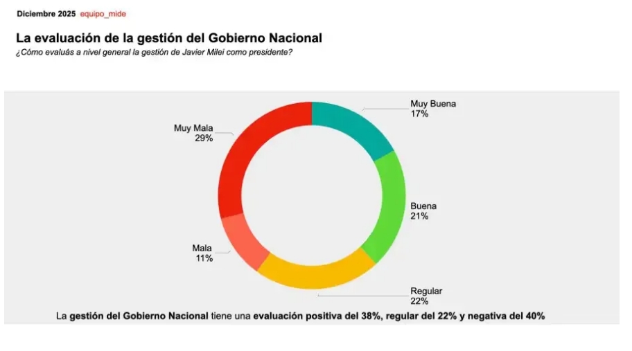 La encuesta de Equipo_Mide presenta a un electorado dividido: existe una base que mantiene confianza y una mayoría que cuestiona el rumbo. Las tensiones entre evaluación positiva de la figura presidencial y valoración negativa del rumbo y del impacto económico configuran un terreno político donde el tercio de independientes y la evolución del bolsillo serán decisivos para la sustentabilidad política de la gestión en el mediano plazo.