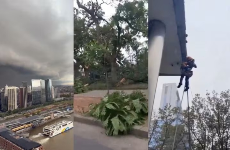 Durante la tormenta también se registró una situación de riesgo en Puerto Madero, donde un limpiador de vidrios que trabajaba en altura quedó enredado con las sogas del equipo de trabajo y debió ser rescatado.