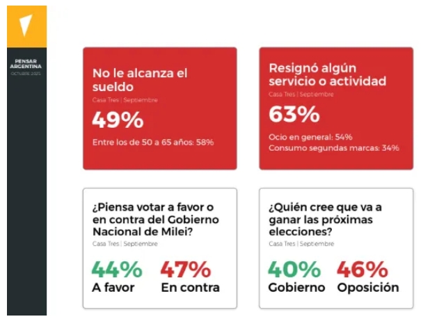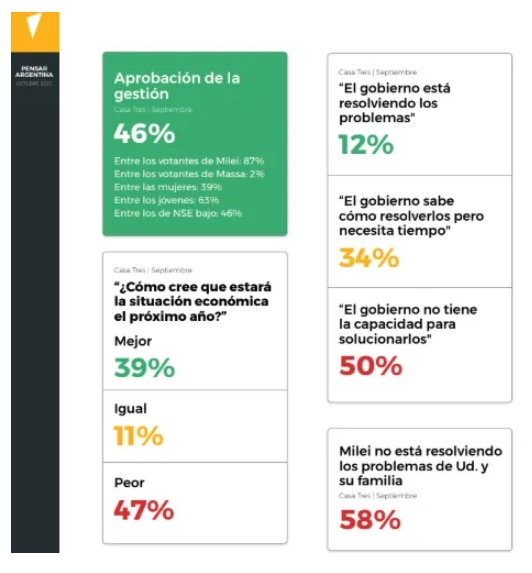 El resultado fue contundente: el 54% de los argentinos expresa un ánimo negativo, 7 puntos más que al inicio del mandato libertario, y sólo el 46% aprueba la gestión.