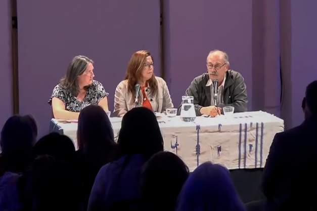 Estela de Carlotto no pudo viajar, pero quiso estar presente. Envió un video en el que saludaba especialmente a "Yamandú" y "Carolina" con una cercanía que parece imposible en la Argentina de La Libertad Avanza (LLA). Y agradeció a los integrantes de la Red por el Derecho a la Identidad, que tienen la "misión de seguir buscando a los más de 300 nietos que nos faltan encontrar".