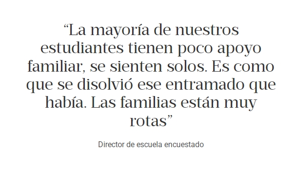 Los niños, jóvenes y adolescentes crecen en tejidos sociales conformados por las familias, las escuelas, los servicios y los espacios de sociabilidad como clubes o centros culturales, indica Hernández. "Todo esto les permite tener herramientas para imaginar una vida que les organice el presente y para que puedan proyectarse en el futuro. Pero esas tramas están deterioradas, entonces ese futuro se hace difuso", agrega.
