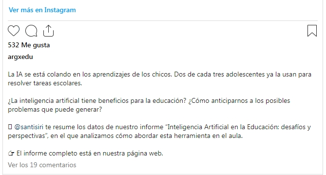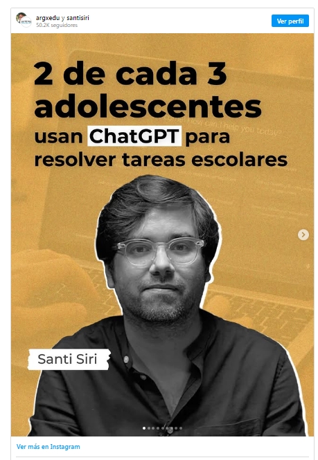 "Esto lleva también a que la escuela o el sistema educativo piense en otras formas de evaluar. Si lo que espera es respuestas correctas a preguntas ya establecidas, te lo va a contestar la inteligencia artificial, Google, Wikipedia o El Rincón del Vago", expresó.