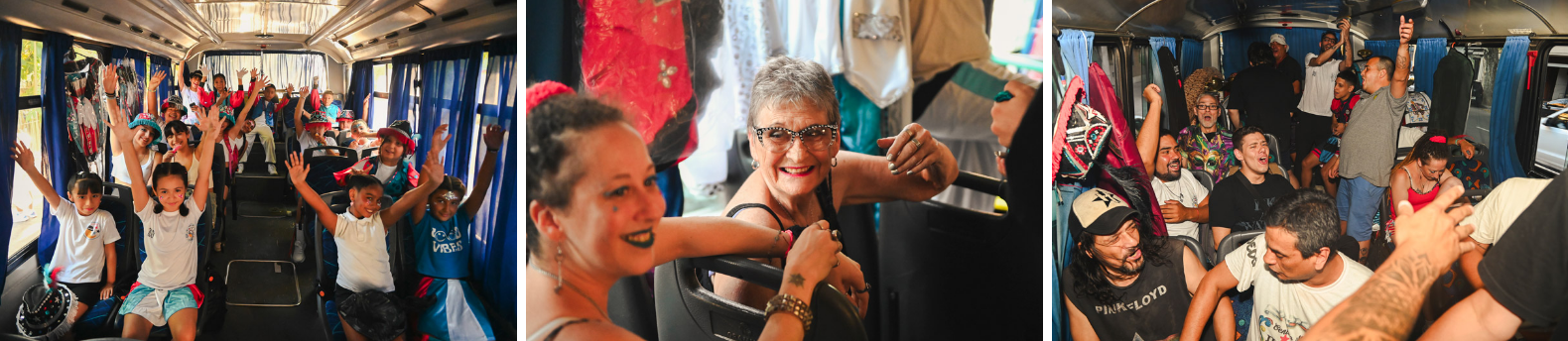 La entrada de la murga al corso se divide en partes: saludo, presentación, despedida. La más esperada es la crítica, el momento en que el pueblo canta contra el poder. Una forma colorida de reclamar y rebelarse. Sin embargo, los límites existen. "Si le llego a sentir olor a porro a alguno, lo bajo en cualquier lado", asegura Marciano, con una convicción que inspira respeto. Dice que mucha gente cree que los murgueros son todos "negros borrachos", pero que en carnaval compra mil trescientos litros de agua mineral para llevar en los micros. "Entonces, ¿qué hago? —pregunta y se responde él mismo—: dejo salir la murga y a mitad de camino me subo al primer micro. Me voy al tambor donde está el agua, a ver si no le echaron otra cosa. Si está todo bien, bajo en el siguiente semáforo y me subo al otro micro. Hay chicos en la murga. Están mis nietos. No voy a permitir desde ningún punto de vista que pasen esas cosas".