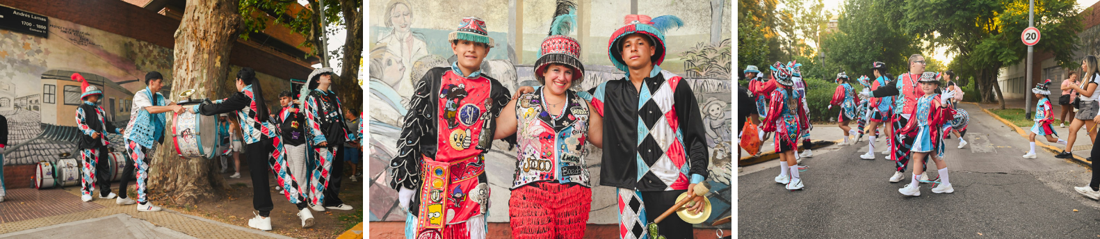 El tiempo pasa rápido entre un domingo de ensayo y el siguiente. El clima más benévolo de octubre invita a sumarse, pero para noviembre la murga ya es casi el doble de grande. Esta plaza —que supo ser una antigua estación de tranvías y fue espacio verde gracias a la lucha de los vecinos— y tantas otras en la ciudad empiezan a llenarse. Yo bajo con mi mate. Es la primera vez que vivo en un barrio con una historia tan rica —el tango, la literatura, el arte pintado en las calles— y pienso disfrutarlo. Hay otras siete murgas en Boedo, pero esta es la nuestra. Mamás y papás de las "mascotas" —los chicos entre cinco y doce años— hacen lo mismo que yo mientras sus hijos se divierten tirando pasos.