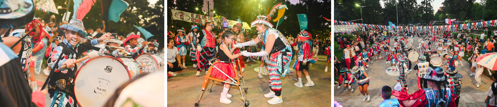 Las mascotas adelante, las fantasías detrás, murgueras y murgueros tiran los pasos prohibidos, las patadas en el aire, el cuerpo que parece caer pero se levanta, rebota, brilla. Tum, tum, tum. ¡Boedo! Los bombos y redoblantes completan el ingreso de este centenar de personas —esta familia— que lleva casi todo un año ensayando, igual que tantas otras, en una plaza de Buenos Aires.