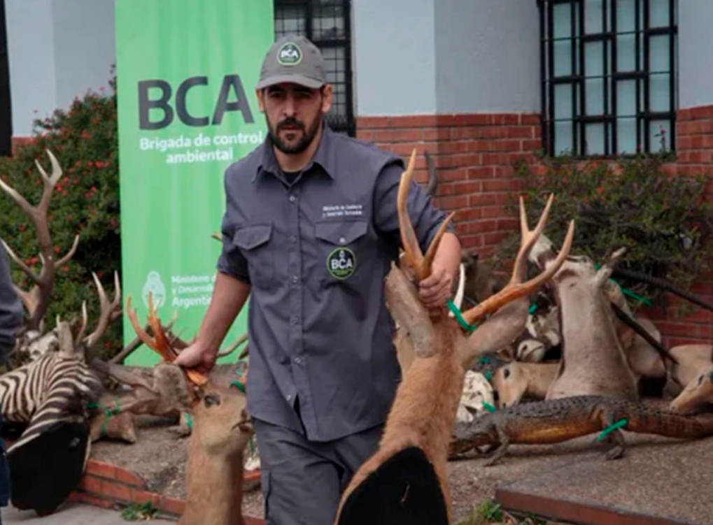 Durante una serie de allanamientos realizados en 2023, la Justicia Federal secuestró 44 armas, 12 vehículos y casi 8.000 taxidermias, cuernos y pieles, entre ellas de yaguareté, especie protegida por ley y declarada Monumento Natural Nacional desde 2001.